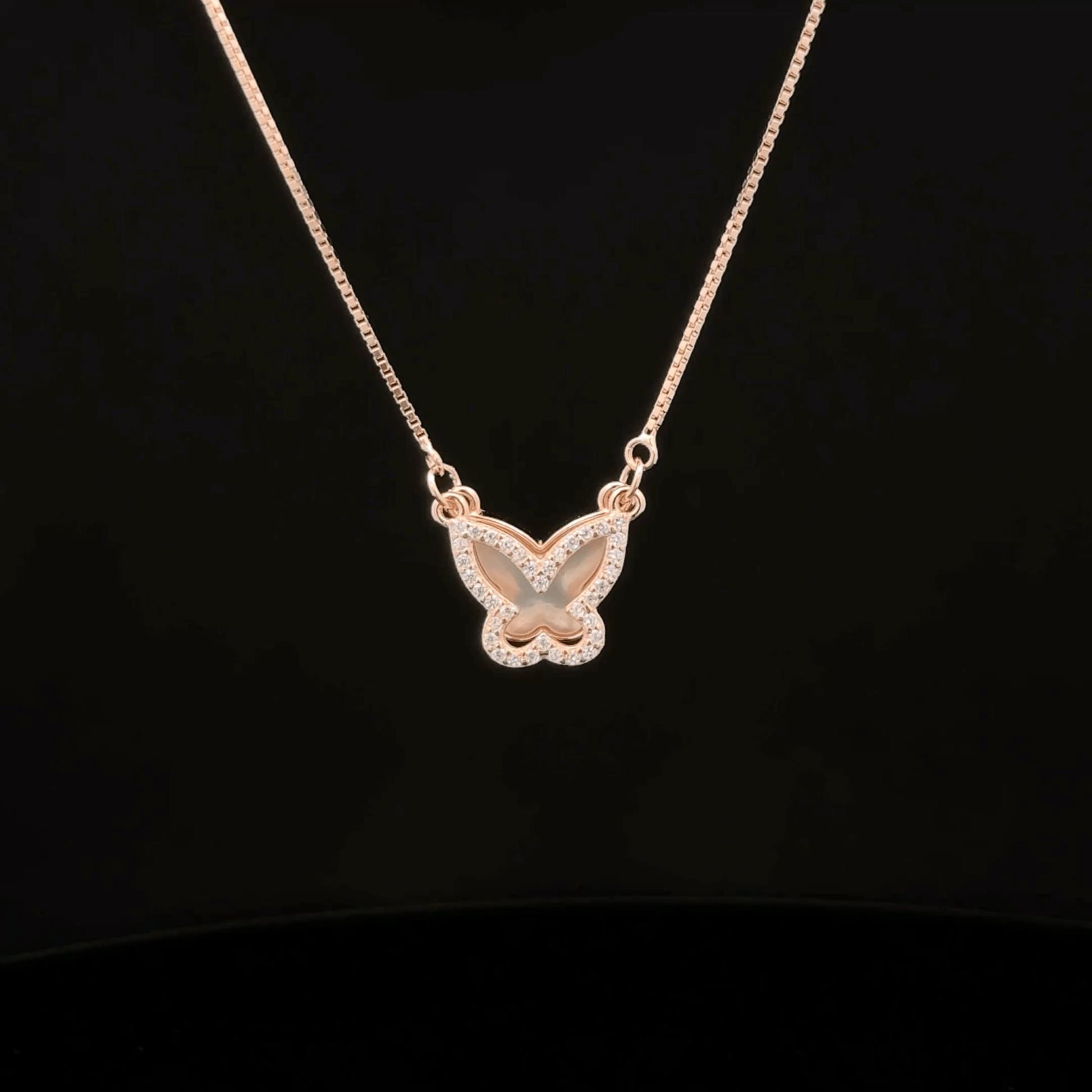 Delicate butterfly motif suspended from a refined chain, this pendant captures the essence of transformation and grace. Crafted with precision, the design features intricate detailing that showcases the natural beauty of butterfly wings. The versatile length allows for layering or standalone wear, making it an elegant addition to any jewelry collection. Perfect for those who appreciate symbolic jewelry that combines aesthetic appeal with meaningful representation. A timeless piece that transitions seamlessly from everyday elegance to special occasions.