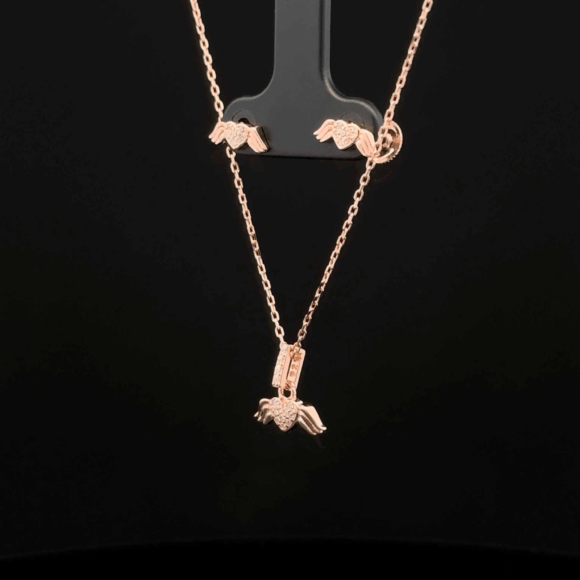 The Flying Heart Chain Pendant Earring from the Flying Heart Chain Pendant Set showcases a refined design featuring a delicate heart suspended from a sleek chain. Expertly crafted to combine grace and modern style, these earrings provide an elegant accent that subtly expresses love and movement. They are lightweight and versatile, suitable for both everyday wear and special occasions, adding a sophisticated sparkle that complements your ensemble with ease.