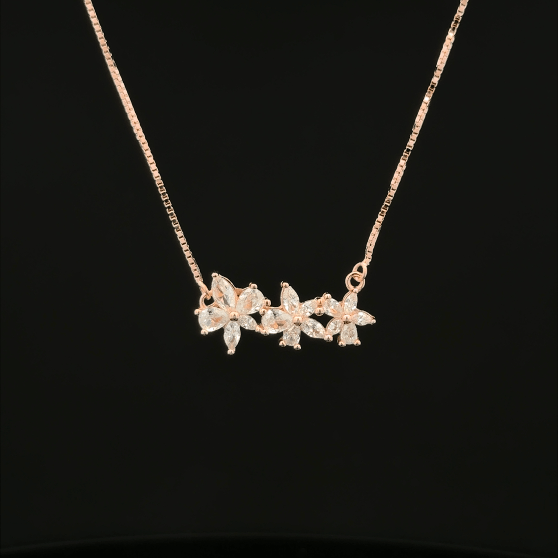 Elevate your jewelry collection with this exquisite Three Flower Chain Pendant, a masterpiece of delicate craftsmanship. Each bloom is meticulously detailed, creating a harmonious floral composition that catches light beautifully. The pendant suspends gracefully from a refined chain, offering versatile styling for both everyday elegance and special occasions. Perfect for those who appreciate botanical-inspired jewelry with timeless appeal, this piece combines artistic design with wearable sophistication. A stunning addition to any discerning jewelry lover's wardrobe.
